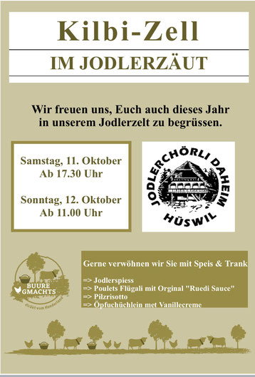 11. Oktober 2025 Kilbi-Zell Am Samstag, 11. Oktober und Sonntag, 12. Oktober begrüssen wir euch herzlich im "Jodlerzäut" an der Kilbi in Zell. tagPlaceholderTags: